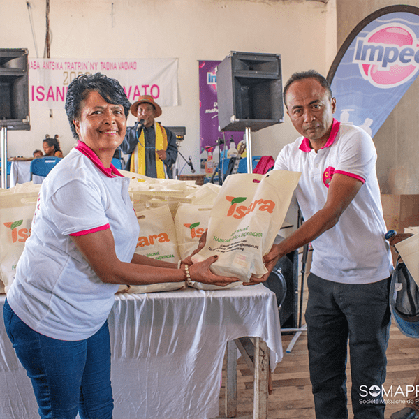 Société leader dans la fabrication et distribution de produits d’hygiène, d’entretien et de bien-être, la SOMAPRO est engagée dans les actions sociales afin d’améliorer le quotidien de chacun. Avec de nombreux actes de bienfaisance au sein de la commune d’Ivato, cette donation fait partie des innombrables donations effectuées par cette jeune entreprise dans la commune d’Ivato. Association, organisations, écoles et population, tous ont déjà bénéficiés de donations de la SOMAPRO dans la commune d’Ivato.