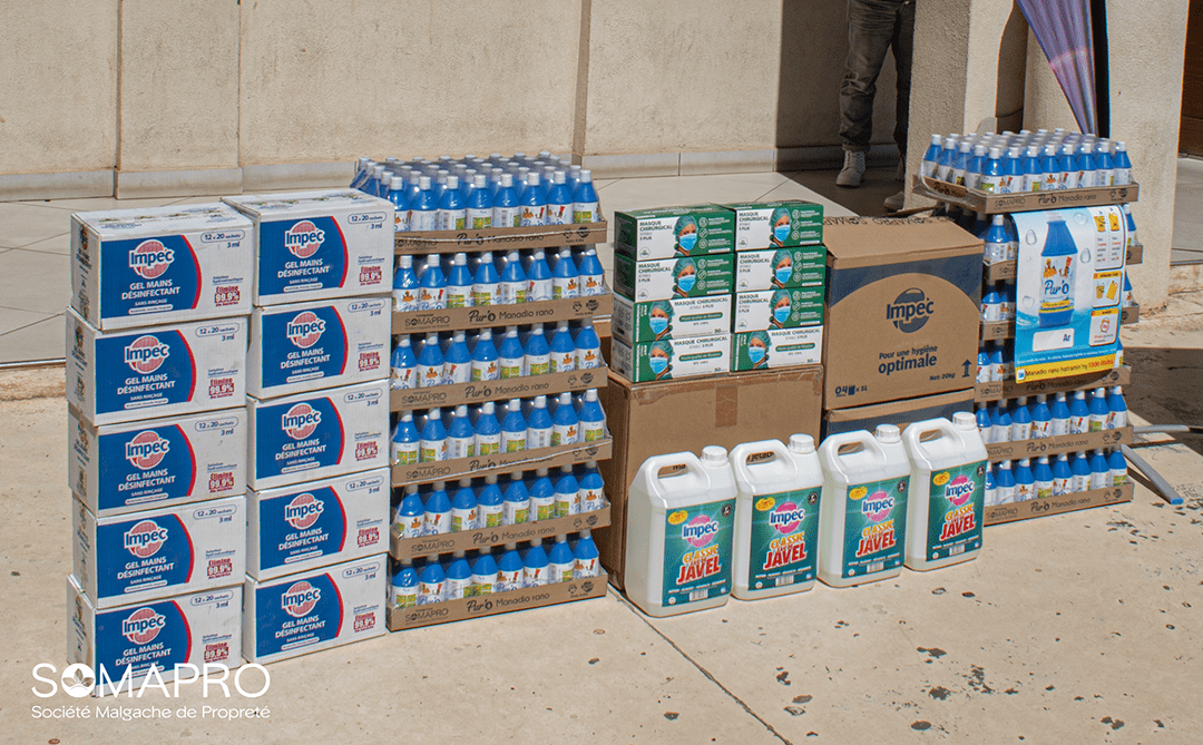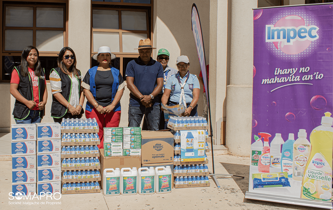 Consciente de son rôle clé dans le secteur de l’hygiène et de l’entretien à Madagascar, la société SOMAPRO a tenu à accompagner cette initiative en apportant une contribution de :