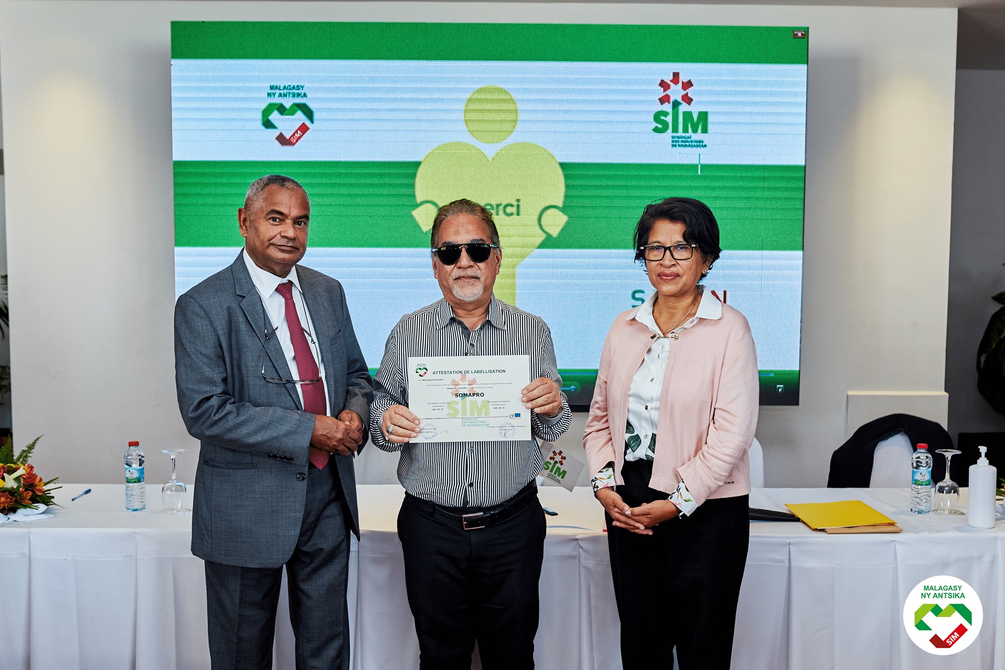 Nous avons reçu l'ATTESTATION DE LABÉLISATION « Malagasy Ny Antsika » du Syndicat des Industries de Madagascar (𝗦𝗜𝗠), le 23 septembre 2021.